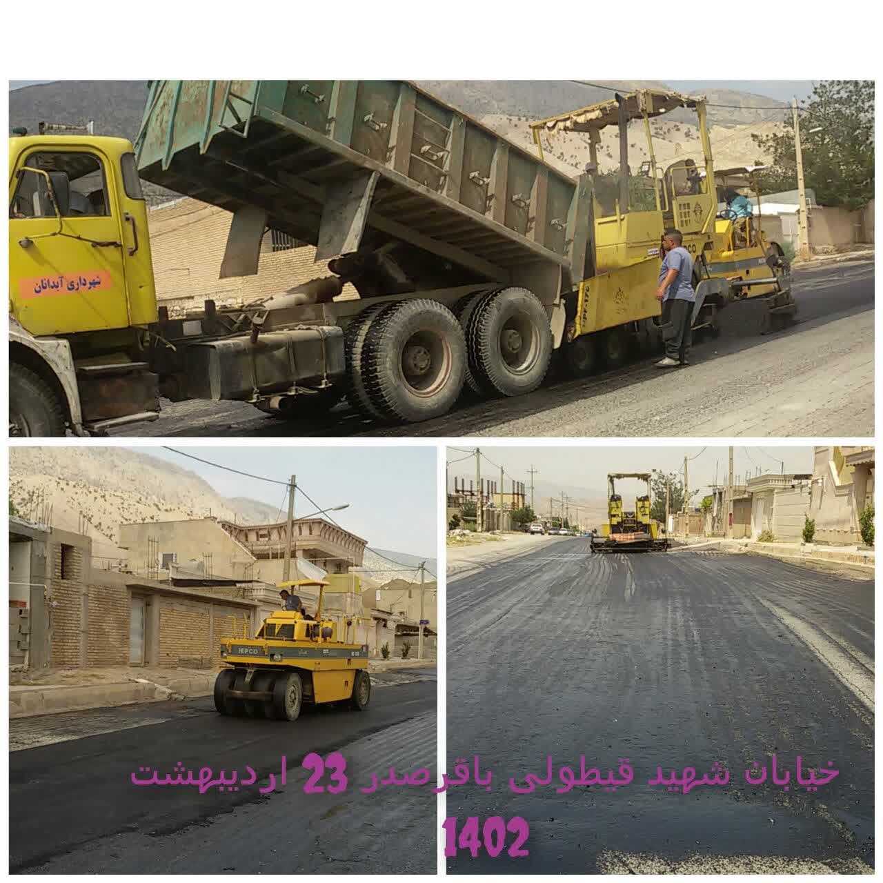 شهردار آبدانان از پایان عملیات آسفالت خیابان شهید قیطولی در چند روز آینده خبر داد. ☑️مهندس دوستی با بیان اینکه تناژ آسفالت استفاده شده در این معبر روزانه ۲۵۰ تن میباشد، خاطرنشان کرد: تلاش مد...